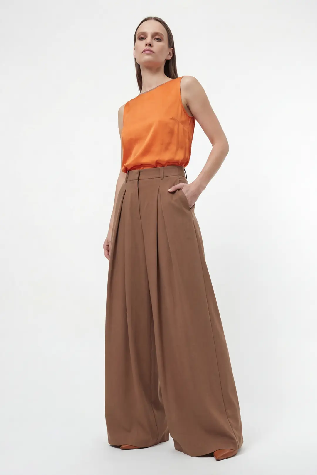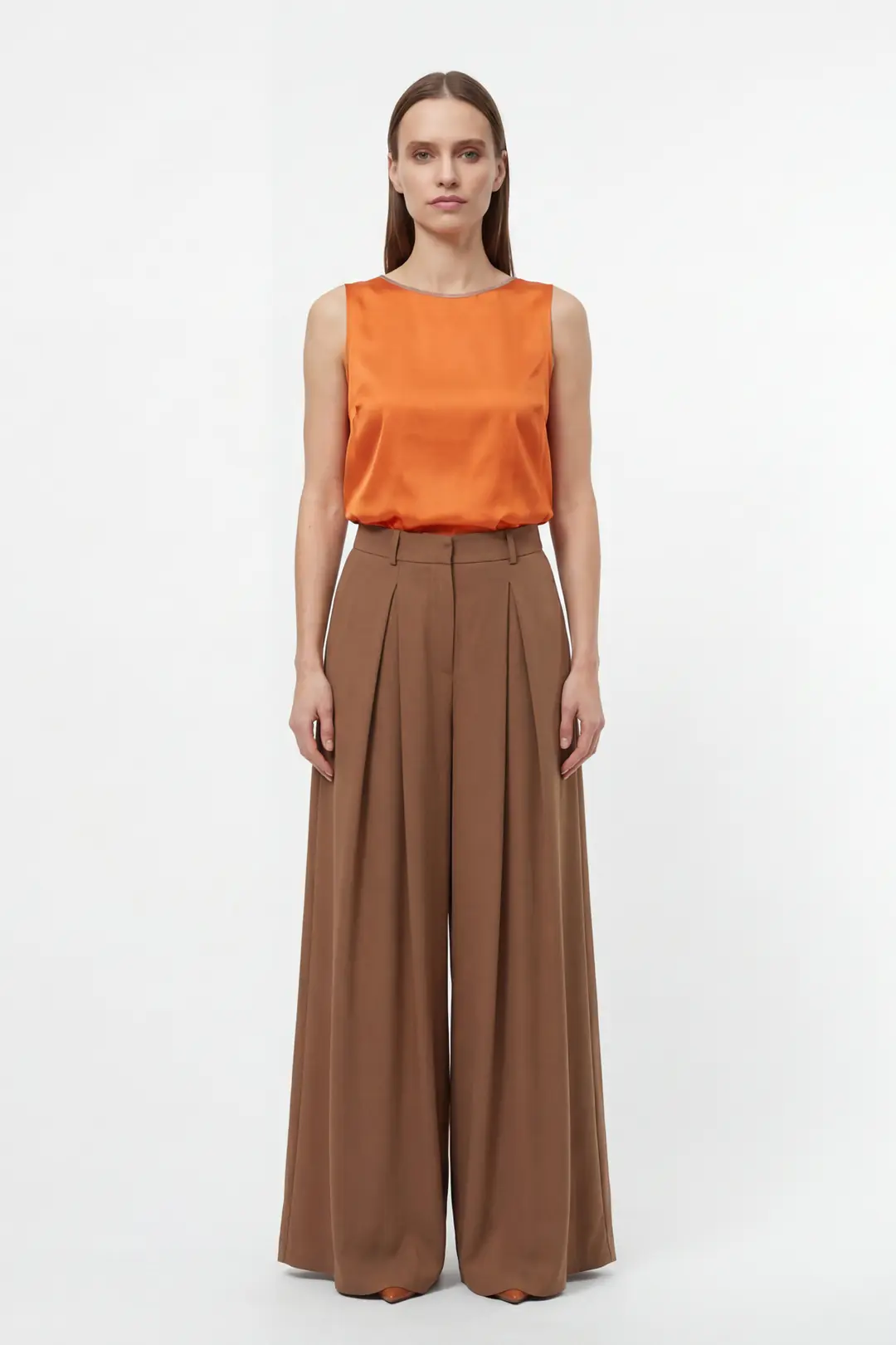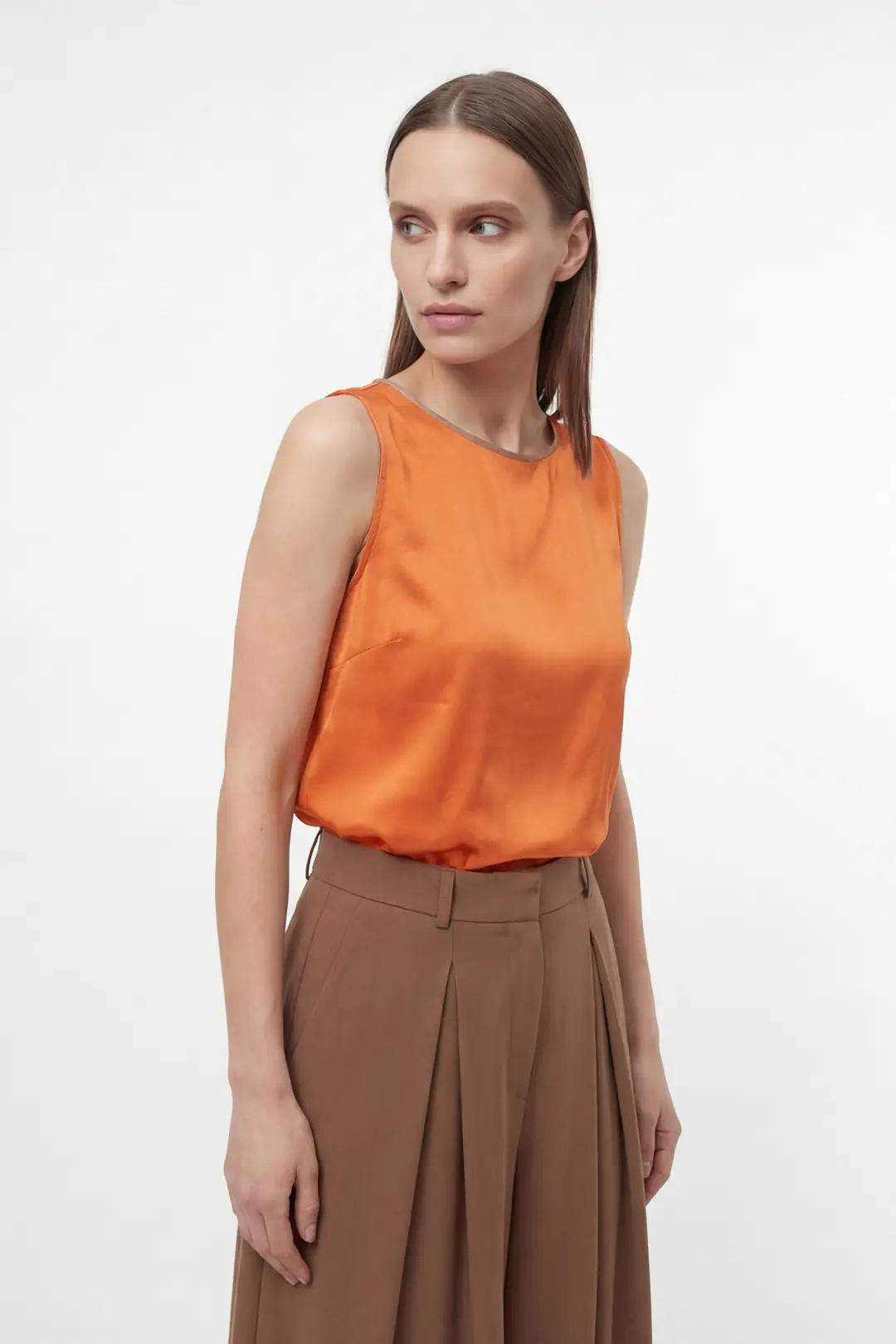 Canlı fuşya rengi ve parlak saten dokusuyla öne çıkan kadın bluz, feminen ve modern bir şıklık sunuyor. Kolsuz tasarımı sayesinde yaz aylarında rahat kullanım imkânı sağlarken, etek ve pantolonlarla kolayca kombinlenebilir. Günlük şıklıktan özel davetlere kadar zarif bir alternatif oluşturur.